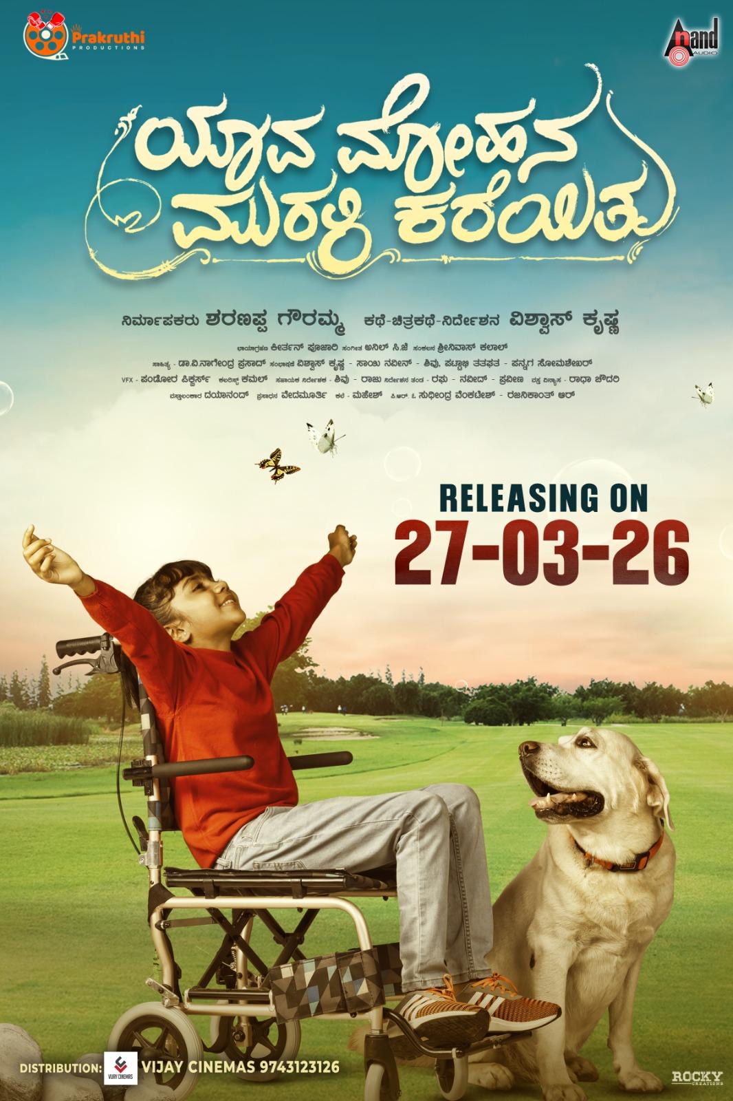 The film “Yaava Mohana Murali Kareyitu”, directed by Vishwas Krishna, is built around the idea that “once something—or someone—is lost, trying to regain it often leads to regret or sorrow.” Along with portraying the bond between a dog and a human, the story also presents a beautiful journey of a father and daughter. Mohan (Madhav), the son of a wealthy man from a place called Kargal, lives with his wife Sindhu (Swapna) and daughter Prakruthi. Though they are a happy family, Mohan carries the pain of his daughter being physically challenged. However, they raise her with love, without letting it affect their affection. At this point, a dog named Rocky enters Prakruthi’s life and brings immense joy, filling the void in her life.